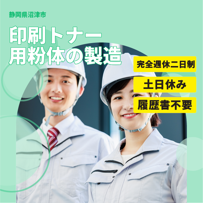 給与詳細 月収例 196,800円 時給例 1,230円 勤務地 静岡県沼津市 仕事内容 印刷トナー用粉体の製造