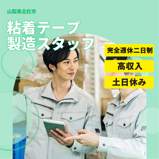 就業場所:全国/就業範囲:派遣先業務全般(詳細は就業条件明示書で明示する) 一般家庭や建築用のテープ製造