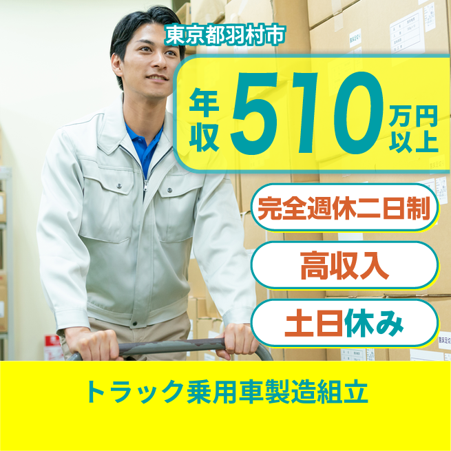 給与詳細 月収例 304,000円 時給例 1,900円 勤務地 東京都羽村市 仕事内容 トラック・乗用車の製造(組立・塗装・検査等)