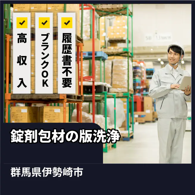 給与詳細 月収例 240,000円 日給例 12,000円 勤務地 群馬県伊勢崎市 仕事内容 【業務内容】