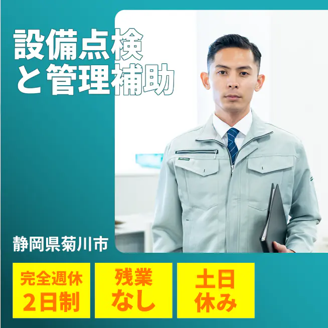 給与詳細 月収例 240,000円 日給例 12,000円 勤務地 静岡県菊川市 仕事内容 ・ユーティリティー設備点検補助(電気・水道・LPG・排水処理場・コンプレッサー等)