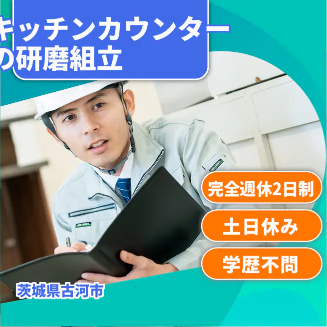 給与詳細 月収例 192,000円 時給例 1,200円 勤務地 茨城県古河市 仕事内容 キッチンカウンター、研磨・組立・梱包
