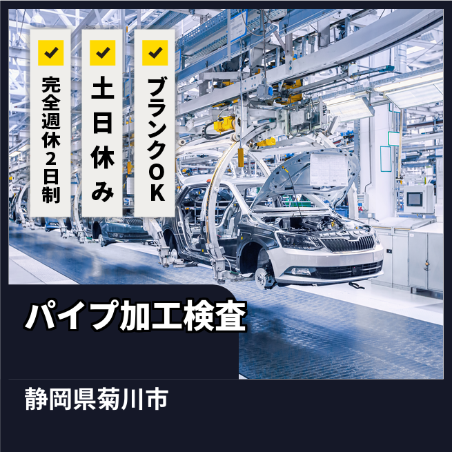 給与詳細 月収例 192,000円 時給例 1,200円 勤務地 静岡県菊川市 仕事内容 自動車部品(パイプ)の加工、検査、機械投入