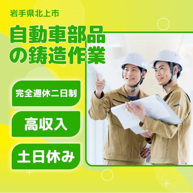 給与詳細 月収例 240,000円 日給例 12,000円 勤務地 岩手県北上市 仕事内容 自動車部品の鋳造作業