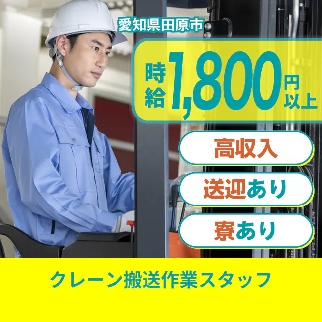 給与詳細 月収例 288,000円 時給例 1,800円 勤務地 愛知県田原市 仕事内容 クレーンで製品の運搬|クレーン・デリック免許必須(寮費2万円)