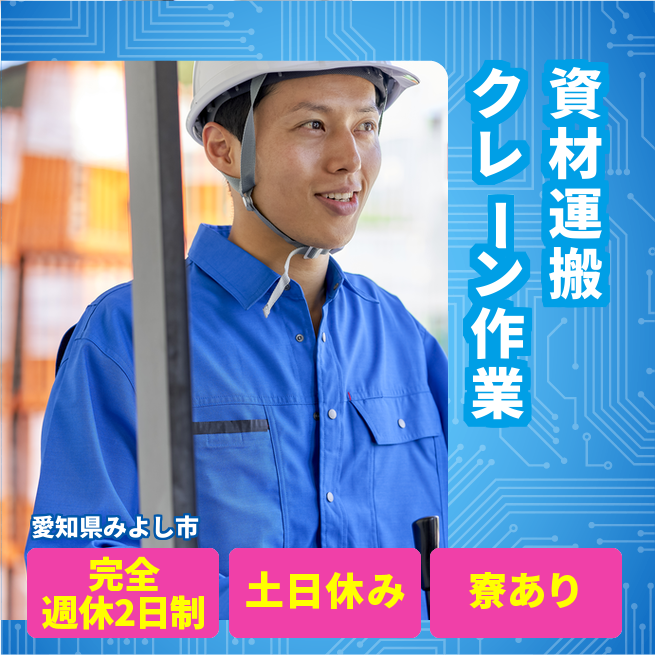 給与詳細 月収例 240,000円 日給例 12,000円 勤務地 愛知県みよし市 仕事内容 床上操作式クレーン・玉掛けを使った材料運搬(中高年活躍中)