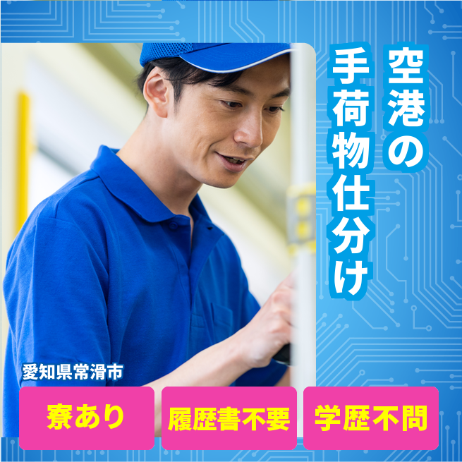 給与詳細 月収例 216,000円 日給例 10,800円 勤務地 愛知県常滑市 仕事内容 【セントレア勤務】交通費全額支給★入寮OK◎残業多めでしっかり稼げる!