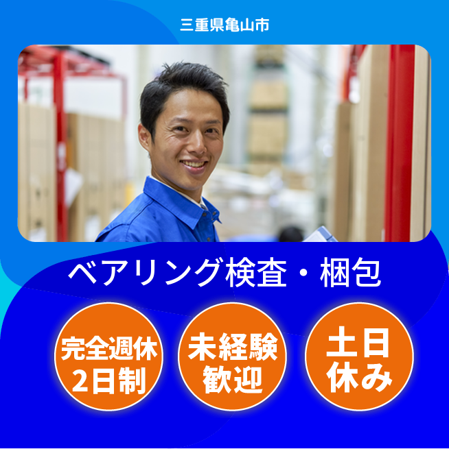 ※各規定あり 交通費 支給あり 応募の流れ 本ページ内<応募する>ボタンより、必要項目をご入力の上、ご応募ください。 勤務地 【勤務地】三重県亀山市太岡寺町 勤務時間 【勤務地】[日勤]7:55~16:45