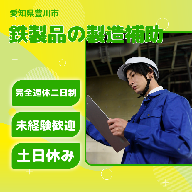 給与詳細 月収例 224,000円 日給例 11,200円 勤務地 愛知県豊川市 仕事内容 鉄製品の製造補助作業(1R寮完備)