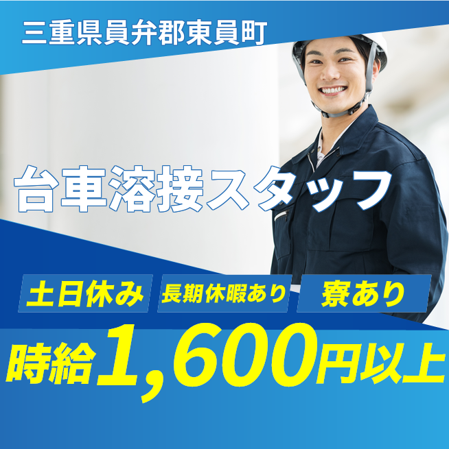 給与詳細 月収例 256,000円 時給例 1,600円 勤務地 三重県員弁郡東員町 仕事内容 ガス溶接・アーク溶接作業(住宅手当支給)
