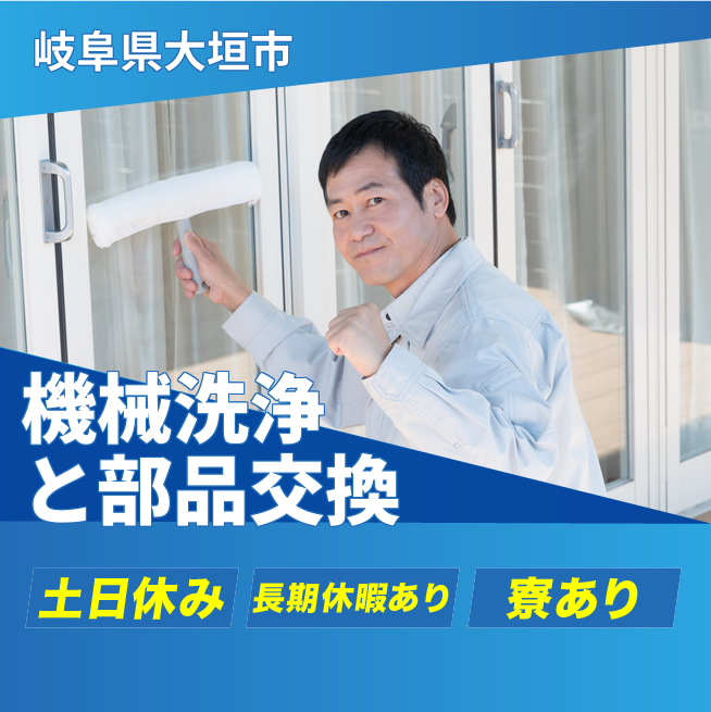 給与詳細 月収例 224,000円 日給例 11,200円 勤務地 岐阜県大垣市 仕事内容 製造機械の部品交換と洗浄作業(日勤のみ・残業なし)