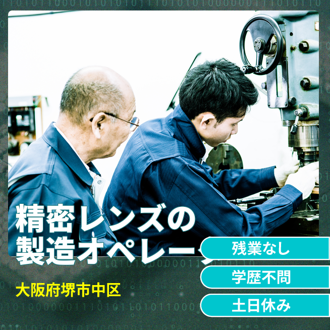 給与詳細 月収例 192,000円 時給例 1,200円 勤務地 大阪府堺市中区 仕事内容 医療業界を支える精密レンズの製造