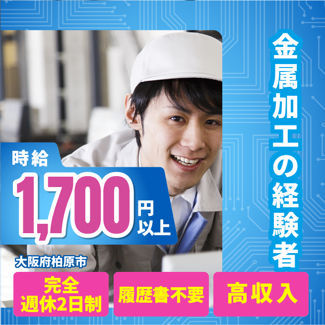 時給例:1700円 交通費 支給あり 応募の流れ 本ページ内<応募する>ボタンより、必要項目をご入力の上、ご応募ください。 勤務地 【勤務地】大阪府柏原市円明町 勤務時間 【勤務地】8:00~17:00