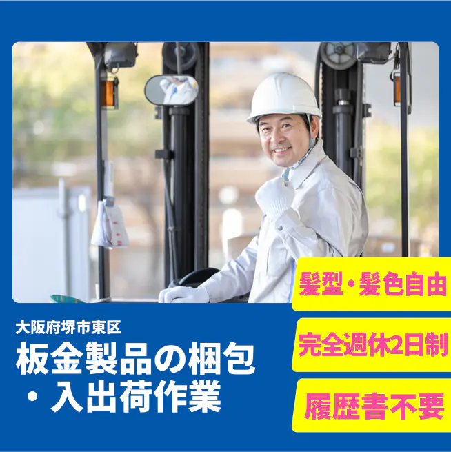 給与詳細 月収例 208,000円 日給例 10,400円 勤務地 大阪府堺市東区 仕事内容 【業務内容】