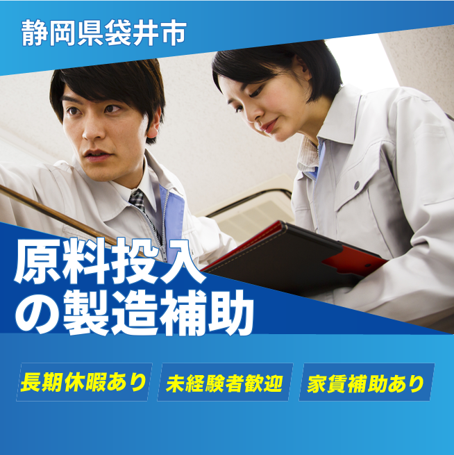 給与詳細 月収例 216,000円 日給例 10,800円 勤務地 静岡県袋井市 仕事内容 【製造補助】