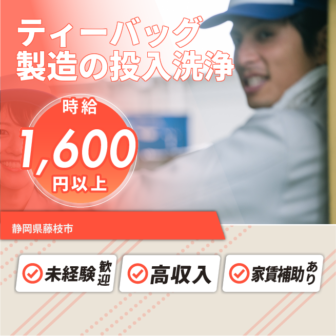 給与詳細 月収例 272,000円 時給例 1,700円 勤務地 静岡県藤枝市 仕事内容 【紅茶製造の工場内作業】