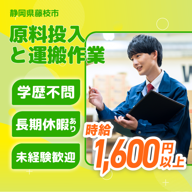 給与詳細 月収例 272,000円 時給例 1,700円 勤務地 静岡県藤枝市 仕事内容 【ティーバッグ原料投入と運搬作業】