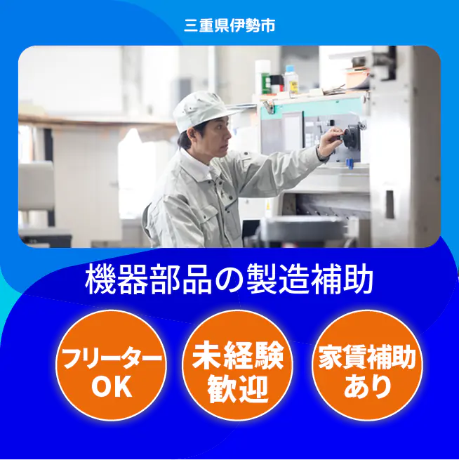 三重県伊勢市の大手機器メーカー工場で、ドライバーを用いたネジ締めや一部梱包などの製造補助を担当します(空調完備・非ライン)。