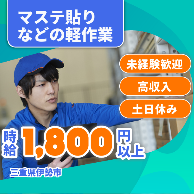 ※各規定あり 公開日 2025年10月01日 三重県伊勢市/ネジ締めやテープ貼りなどの軽作業/未経験スタートOK/20代、30代の男女活躍中