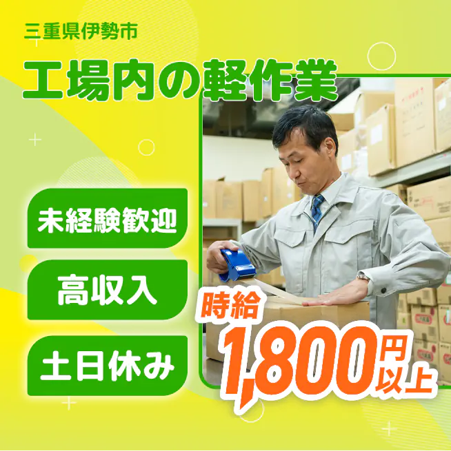 ※各規定あり 公開日 2025年10月01日 三重県伊勢市/ネジ締めやテープ貼りなどの軽作業/未経験スタートOK/20代、30代の男女活躍中