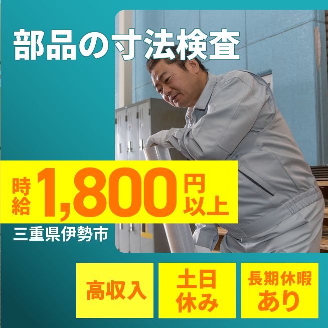 ※各規定あり 公開日 2025年10月01日 三重県伊勢市内の大手メーカー勤務/日勤/土日祝休み/部品の検査業務/~40代半ばの方活躍中