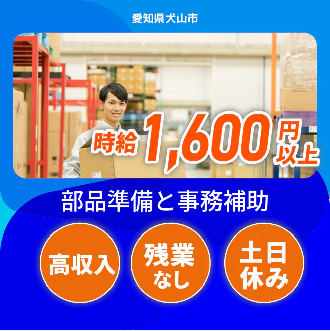 ※各規定あり 公開日 2025年10月01日 愛知県犬山市の大手メーカー内で軽作業と事務補助/土日休み/残業なし/~40代前半の女性活躍中