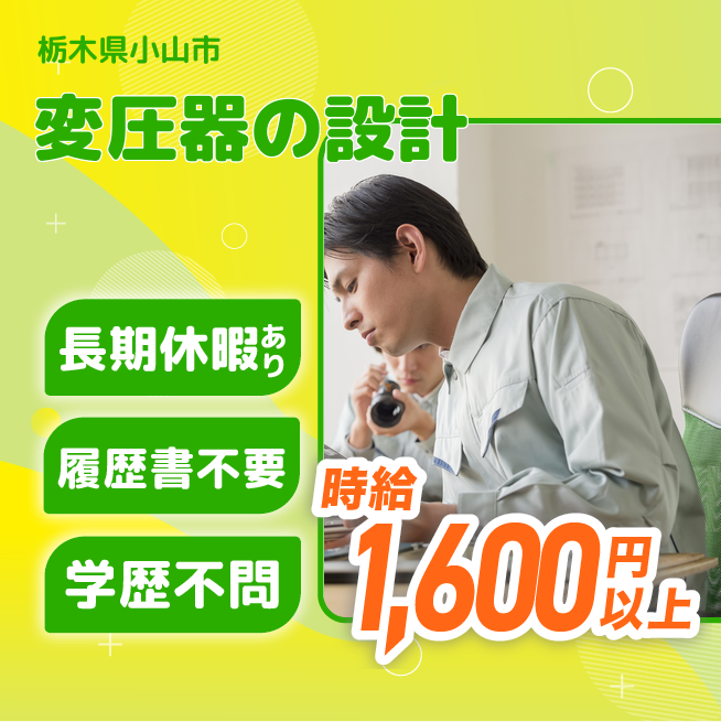 時給例:1600円 応募の流れ 本ページ内<応募する>ボタンより、必要項目をご入力の上、ご応募ください。 勤務地 【勤務地】栃木県小山市中久喜 勤務時間 【勤務地】8:30~17:00(実働7,75時間)