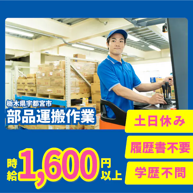 給与詳細 月収例 268,800円 時給例 1,600円 勤務地 栃木県宇都宮市 仕事内容 【概要】