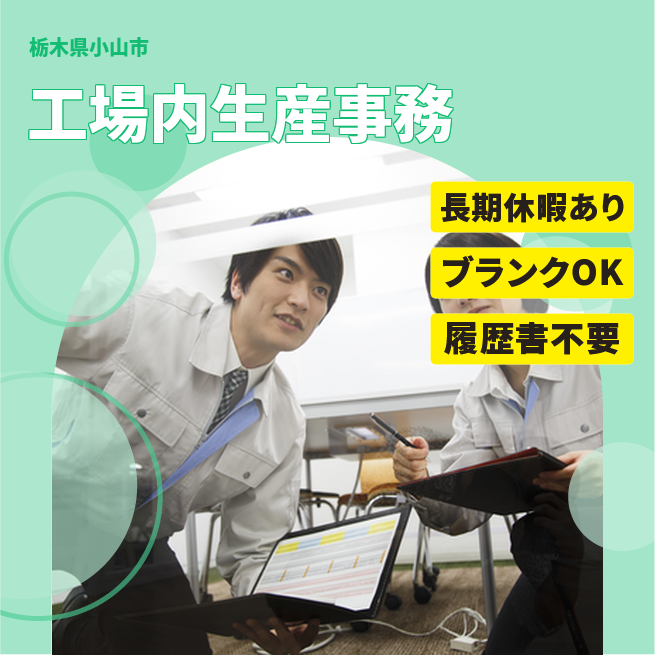小山市に拠点をおく大型生産工場での事務のお仕事!