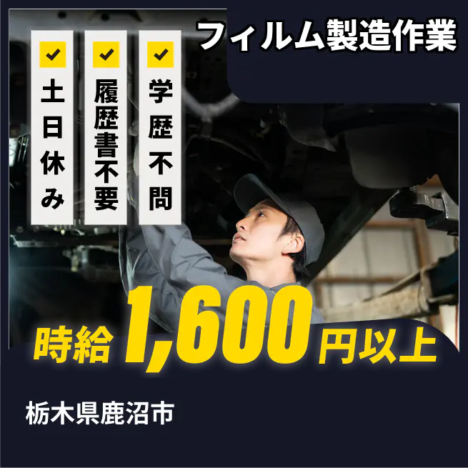 給与詳細 月収例 268,800円 時給例 1,600円 勤務地 栃木県鹿沼市 仕事内容 【概要】