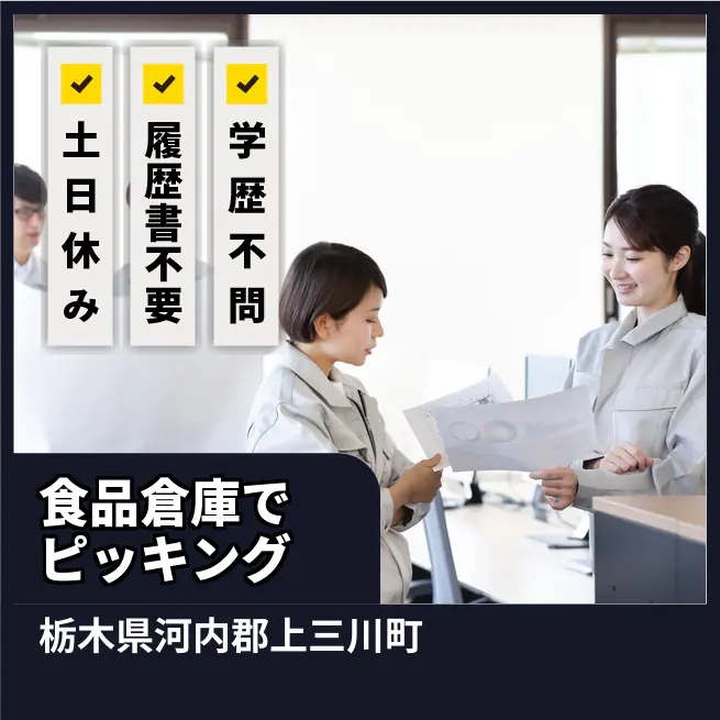 時給例:1400円 交通費 支給あり 応募の流れ 本ページ内<応募する>ボタンより、必要項目をご入力の上、ご応募ください。 勤務地 【勤務地】栃木県河内郡上三川町- 勤務時間 【勤務地】9:00~17:00(休憩60分)
