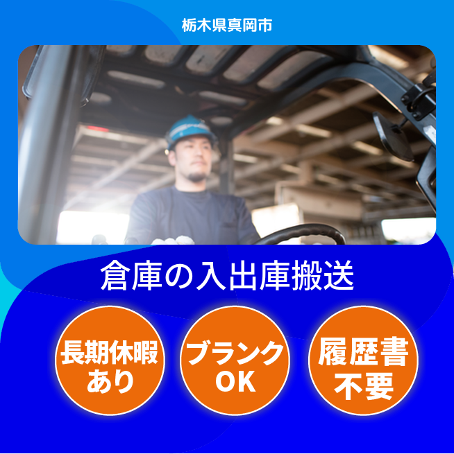 フォークリフトを使用しての倉庫内取り回し、出荷、入荷受入れ、伝票処理などをお願いします。フォーク免許をお持ちの方であれば未経験でもOK!