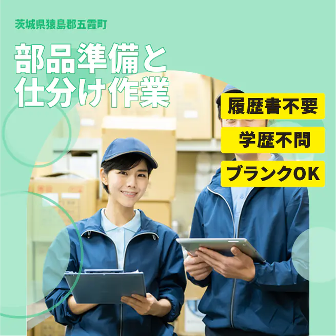 安心の昼勤務【部品準備と仕分け作業】