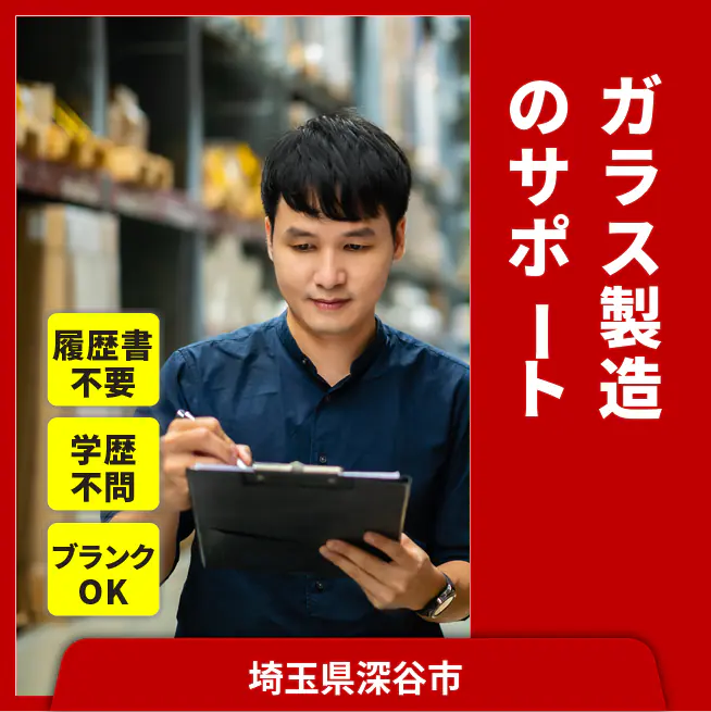 ガラス製品を製造する工場での準備およびサポート業務