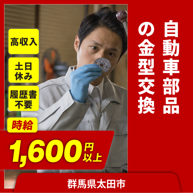 給与詳細 月収例 268,800円 時給例 1,600円 勤務地 群馬県太田市 仕事内容 【業務内容】