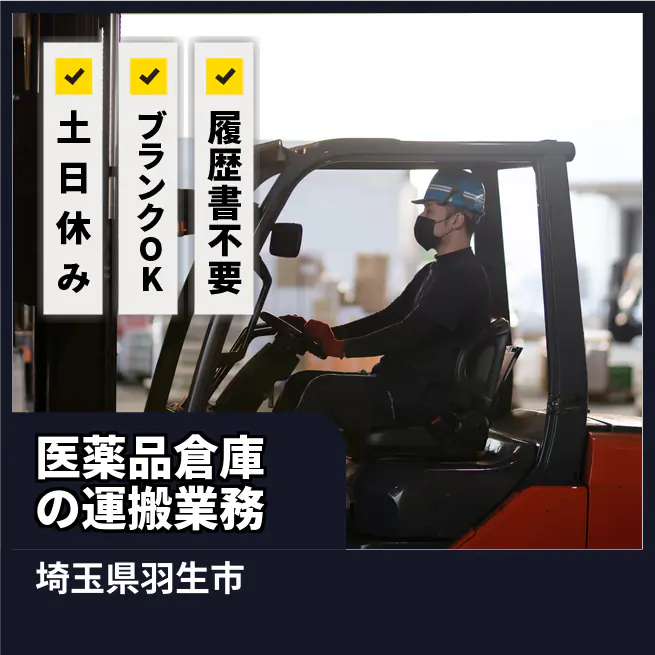 医薬品・化粧品工場で、フォークリフト運搬と入出庫・仕分けを行う物流業務です。
