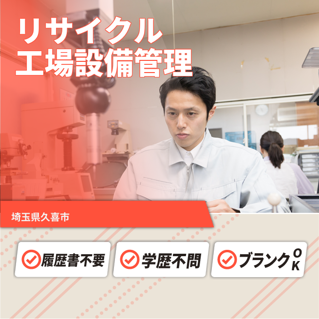 合計229,950 応募の流れ 本ページ内<応募する>ボタンより、必要項目をご入力の上、ご応募ください。 勤務地 【勤務地】埼玉県久喜市河原井町 勤務時間 【勤務地】①8:15~17:15