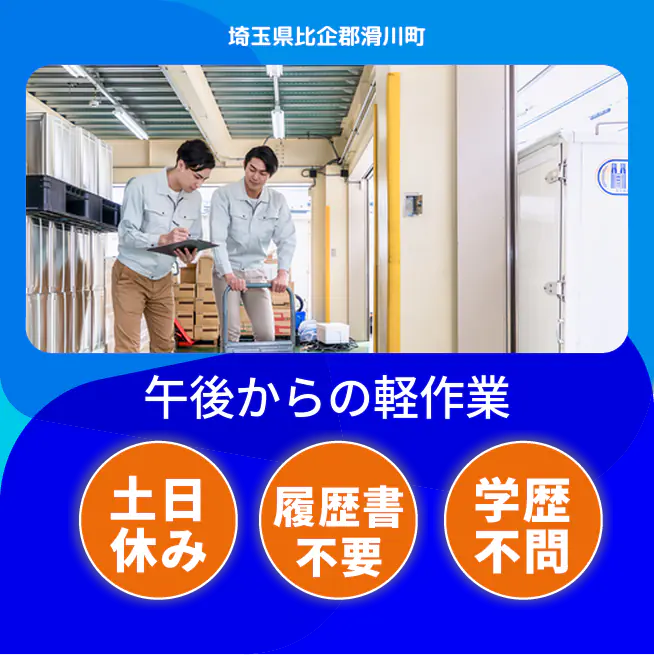 月収例222,000円 応募の流れ 本ページ内<応募する>ボタンより、必要項目をご入力の上、ご応募ください。 勤務地 【勤務地】埼玉県比企郡滑川町福田 勤務時間 【勤務地】\ 日勤のみ /