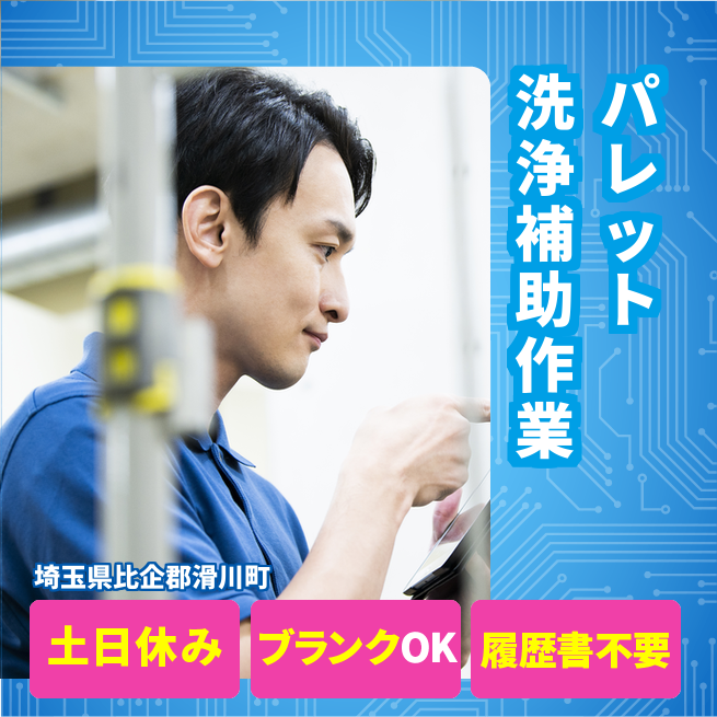 パレットの洗浄、補修、機械作業の補助を行う午後から始まる倉庫での軽作業