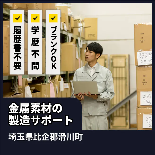 =月収245,000円 応募の流れ 本ページ内<応募する>ボタンより、必要項目をご入力の上、ご応募ください。 勤務地 【勤務地】埼玉県比企郡滑川町都 勤務時間 【勤務地】・16:30~翌1:00