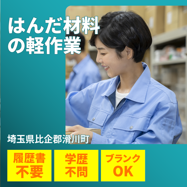 =月収245,000円 応募の流れ 本ページ内<応募する>ボタンより、必要項目をご入力の上、ご応募ください。 勤務地 【勤務地】埼玉県比企郡滑川町都 勤務時間 【勤務地】・16:30~翌1:00