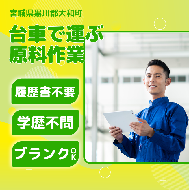 給与詳細 月収例 210,000円 日給例 10,000円 勤務地 宮城県黒川郡大和町 仕事内容 【業務内容】
