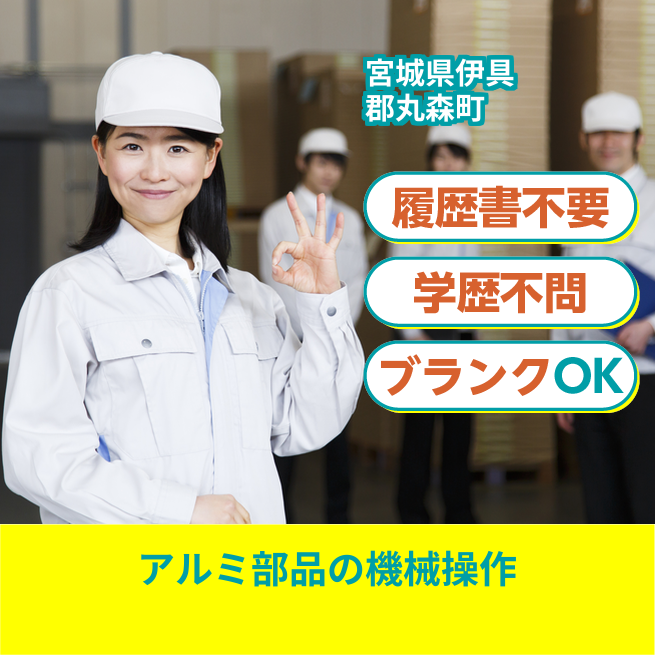 給与詳細 月収例 201,600円 時給例 1,200円 勤務地 宮城県伊具郡丸森町 仕事内容 アルミ部品のセット・簡易マシンOP