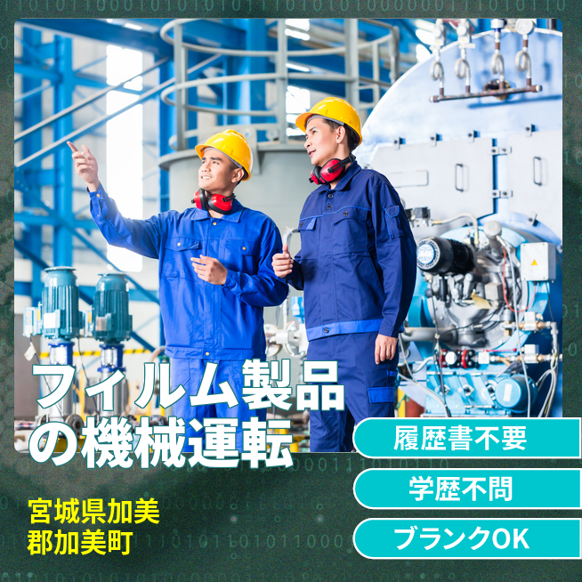 - 機械の操作を行い、フィルムを製造する作業
