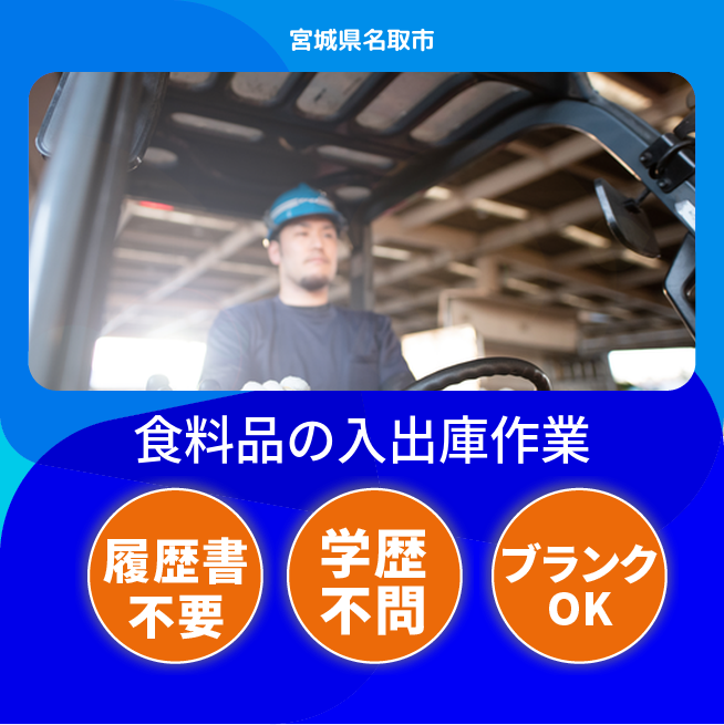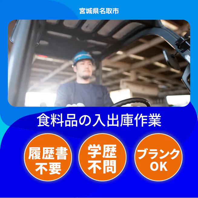 給与詳細 月収例 218,400円 日給例 10,400円 勤務地 宮城県名取市 仕事内容 食料品の入出庫作業(フォークリフト)