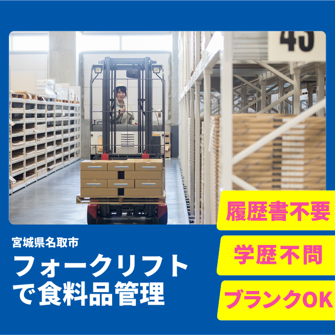 安心の昼勤務【フォークリフトで食料品管理】