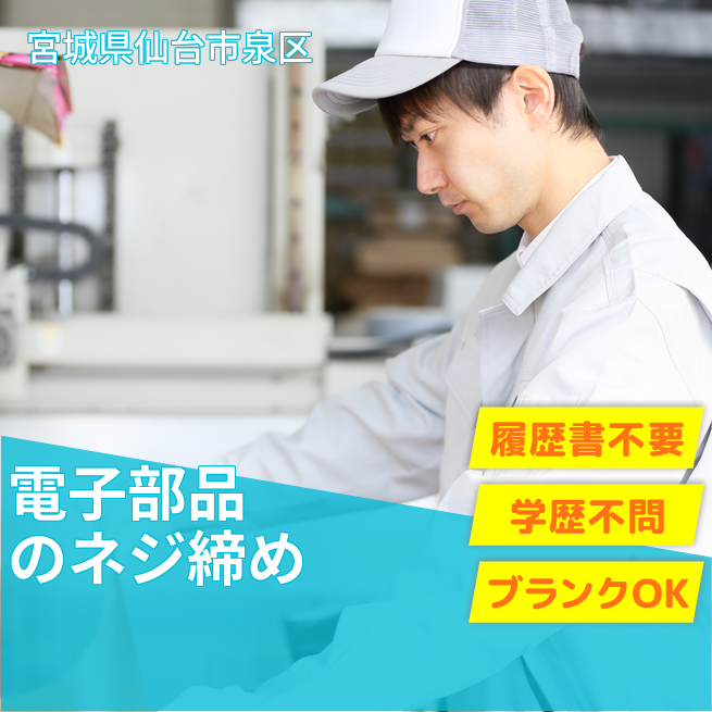 給与詳細 月収例 193,200円 時給例 1,150円 勤務地 宮城県仙台市泉区 仕事内容 電子部品のネジ締め・確認作業