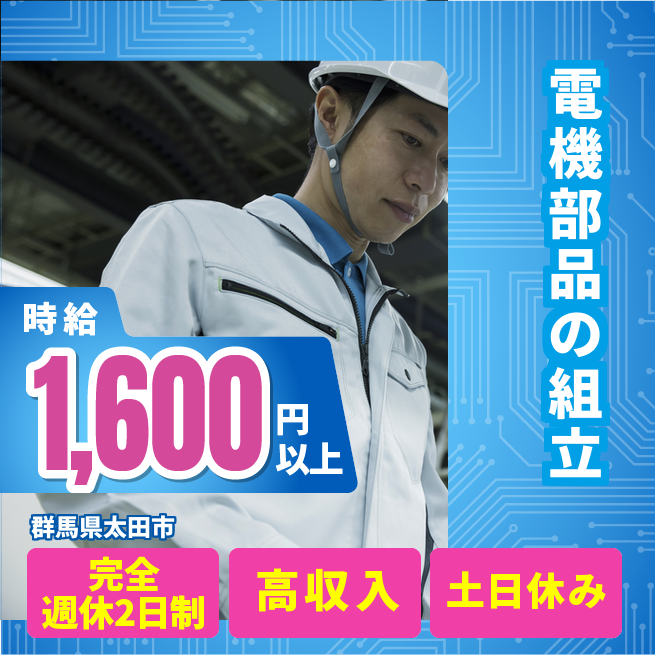 給与詳細 月収例 240,000円 日給例 12,000円 勤務地 群馬県太田市 仕事内容 水力発電機や、電源車、モーターなどの電気機器に使われる部品の検品作業から