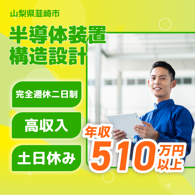 給与詳細 年収例 5,586,384円 月収例 430,000円 勤務地 山梨県韮崎市 仕事内容 【業務内容】