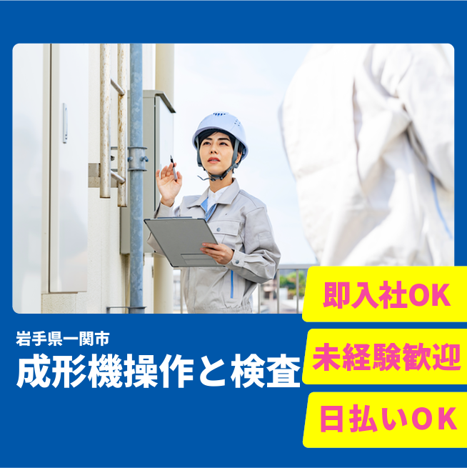 プラスチック製品の成形機操作と製品検査を行う仕事です。